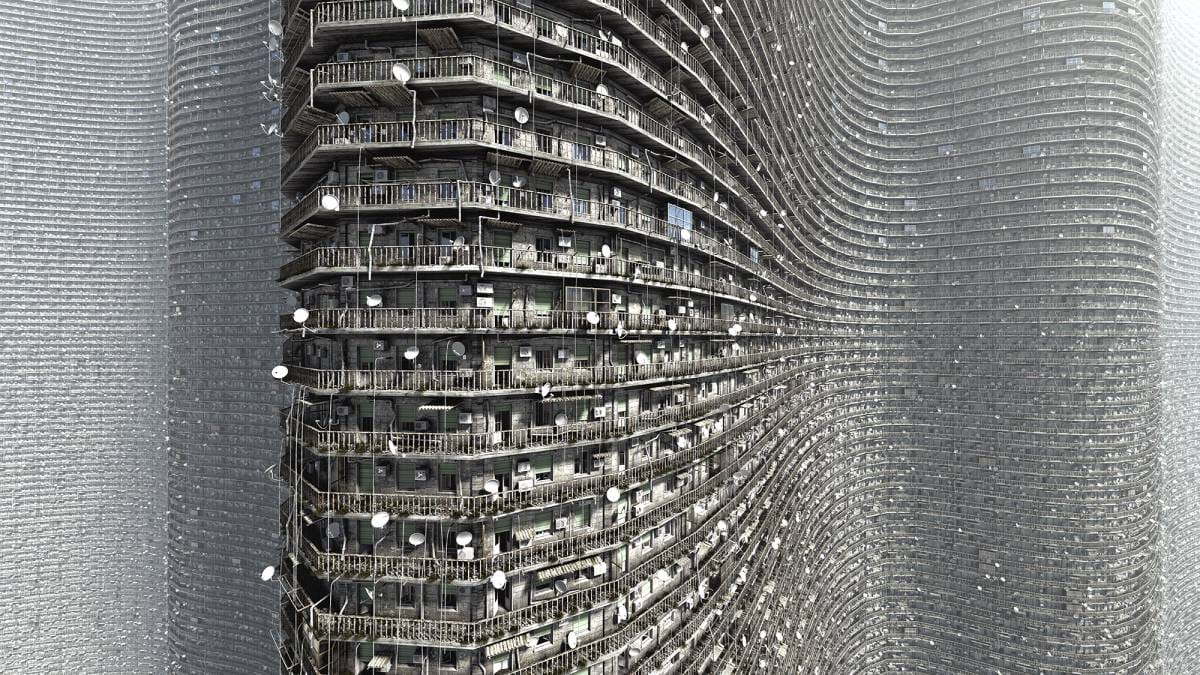 “The idea of generating worlds through rules and data produces highly random scenarios, leaving me an artistic freedom to virtually photograph a world that I myself created… Being at the origin of the scenario, to obtain the images, I must explore these worlds as if it were a photographic report, discovering unexpected angles, glimpses and places,” says the artist.