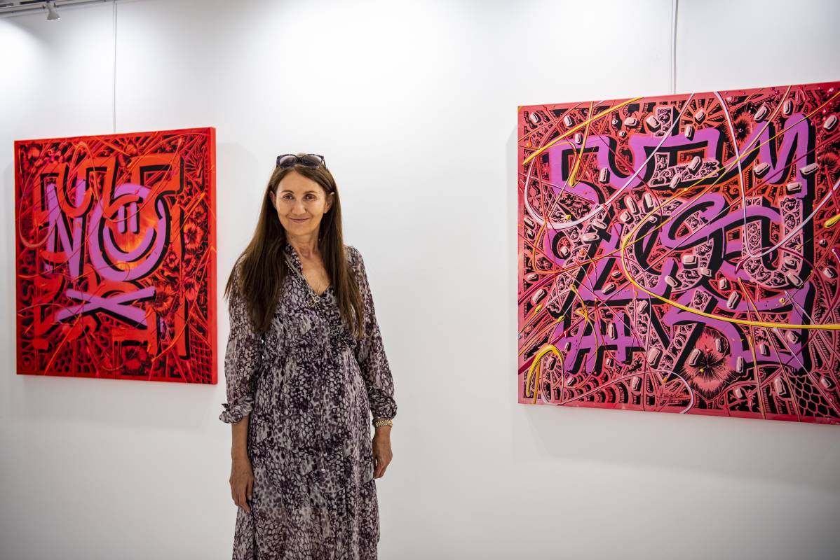 Daniel Boeri & Magdalena Gabriel proposed a ‘medley’ of leading contemporary artists of international fame. ‘Royal Love’ impressive installation by Sonia Falcone who painted in gold dried inflorescences, Flor de Soto, from the Bolivian rainforests, to turn them into a unique sculpture, originally designed by Nature. A symbol of union between natural beauty and Art both precious gems of our Planet. The same fantastic visual perspective nature-based effect was given by Pierre Bonnefille’s ‘Cortex’ series of work on paper depicting beetle shells and mineral fragments like innovative abstract watercolours.