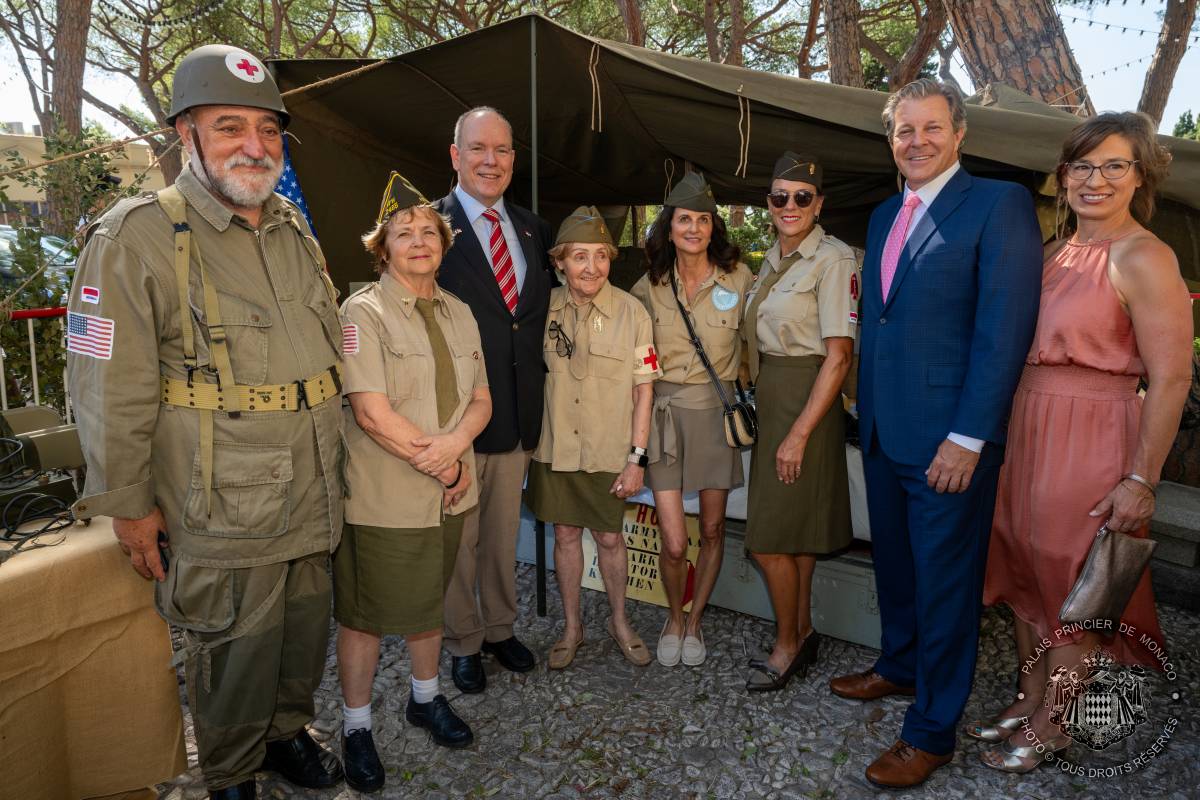 Adding to the sense of history, a reconstruction of an American military base from 1944 was set up in the Place du Palais. Visitors were transported back in time with an array of authentic period items: maps, radios, medical equipment, and military vehicles. Members of the Period Commemoration Committee, dressed in GI uniforms and first aid attire, recreated scenes from the liberation, guiding Prince Albert II through the camp. The Prince was joined by Bradford Hicks, the grandson of General Frederick, in this tour, symbolizing the generational continuity of remembrance.