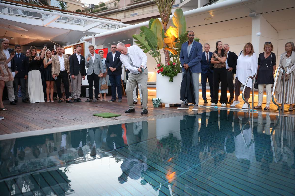 The event closed that evening with the now-iconic “19th hole” staged in the Boulingrins gardens overlooking Place du Casino. Their Serene Highnesses Prince Albert and Princess Charlene led the ceremonial shots, joined by guests and public figures. To protect spectators and the historic surroundings, lighter substitutes for golf balls were used. A Bentley was displayed as a special prize for anyone who could sink the symbolic shot; though no one succeeded in claiming it on this occasion. In addition, each attempt counted toward a €1,000 donation, reinforcing the evening’s charitable purpose.
