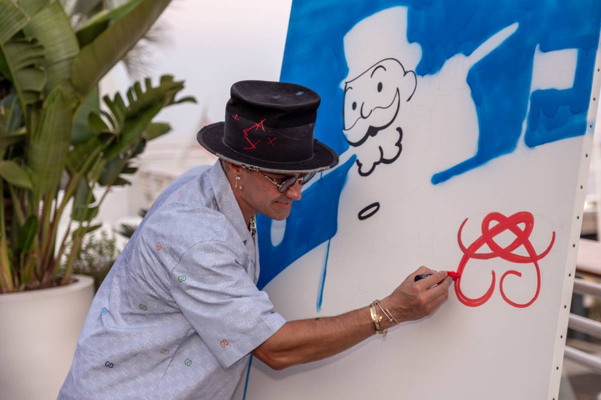 Among the personalities taking part were figures from the sports world, including Formula 1 driver Ollie (Oliver) Bearman. The evening combined sport and celebration, with an art piece unveiled by Alec Monopoly and later signed by the Princely Couple.