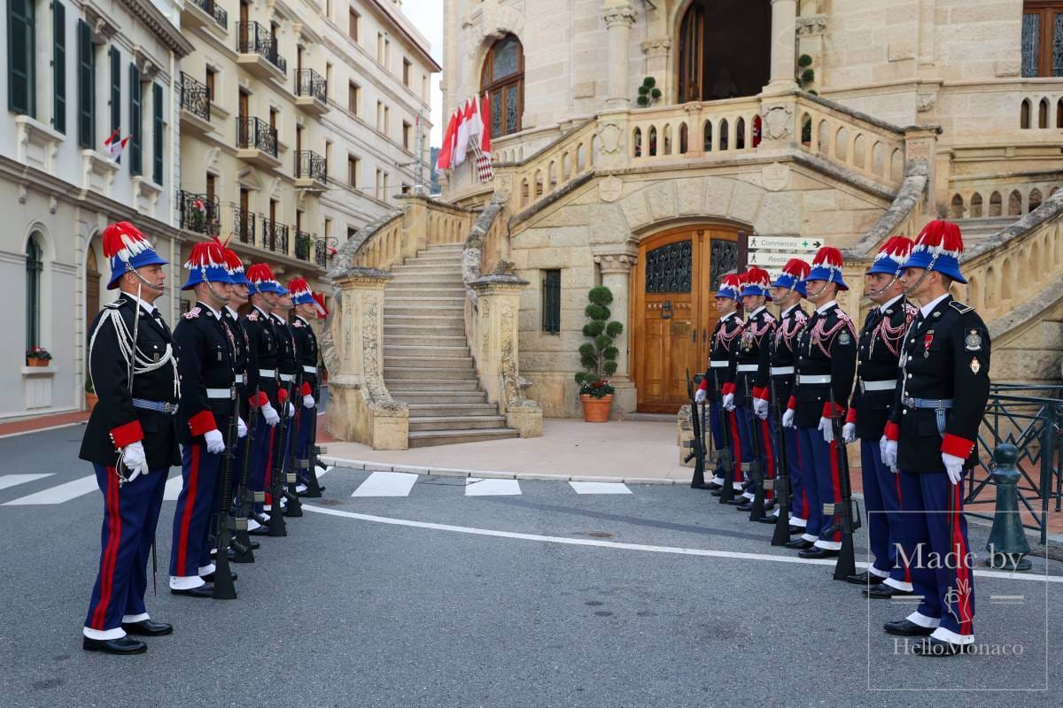 Following the religious part, the proceedings moved to the Cour d’Honneur of the Palais Princier de Monaco, where the sovereign and his family took their places, and the official part of the celebrations took place. The ceremony saw the participation of the Carabiniers, sapeurs-pompiers, and other smartly dressed uniformed services, all impressive as always and included a formal taking-of-arms and review.