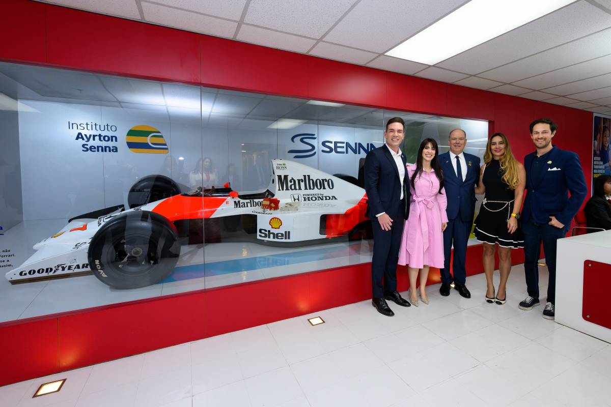 In Pinheiros, Brazil, Prince Albert II gave a brief welcome address in front of Ayrton Senna’s famous McLaren, before being greeting by the driver’s family: Bianca Senna, CEO of Senna Brands, Paula Lalli Senna, Bruno Senna and his nieces and nephews. There, the Sovereign signed the official replica of the Brazilian champion’s “Monaco 1987” helmet.